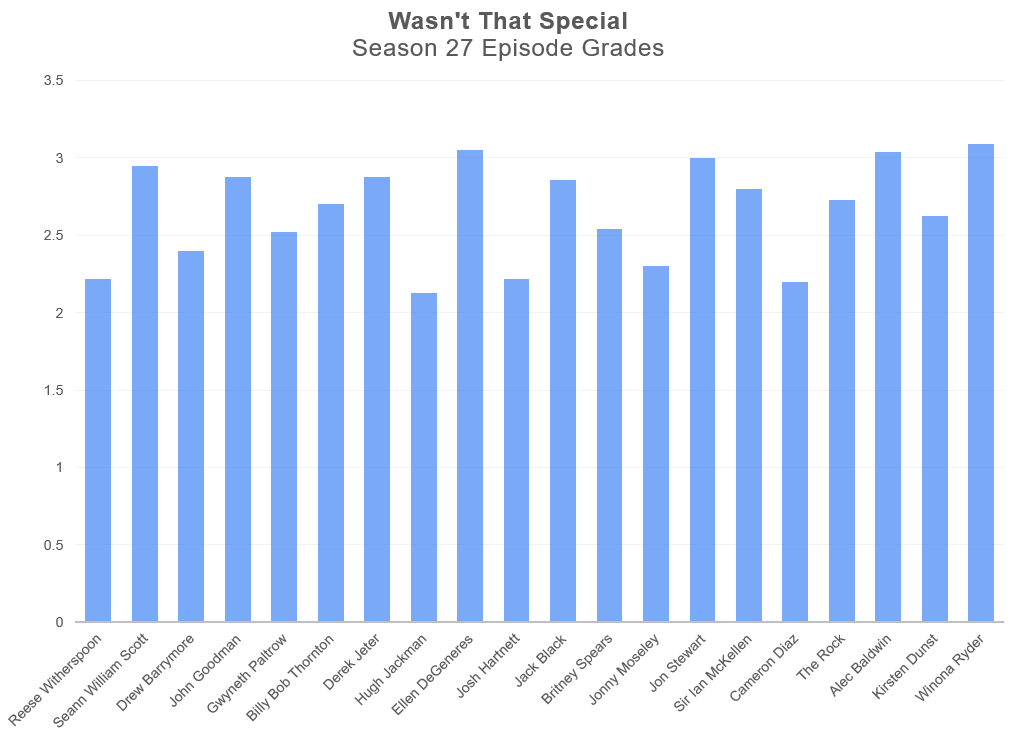 Every few seasons, we drop a post letting you know how the grading system is going. (For seasons 1-25, go here (13-25, here (9-13), here (6-8), here (5), and here (1-4).)