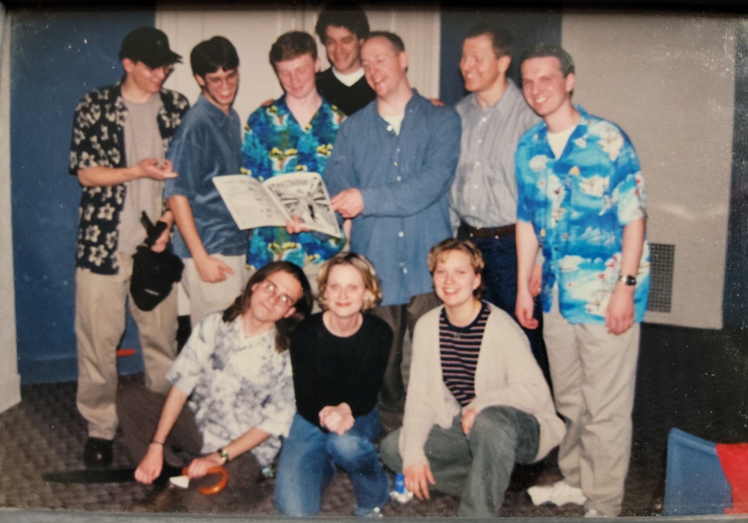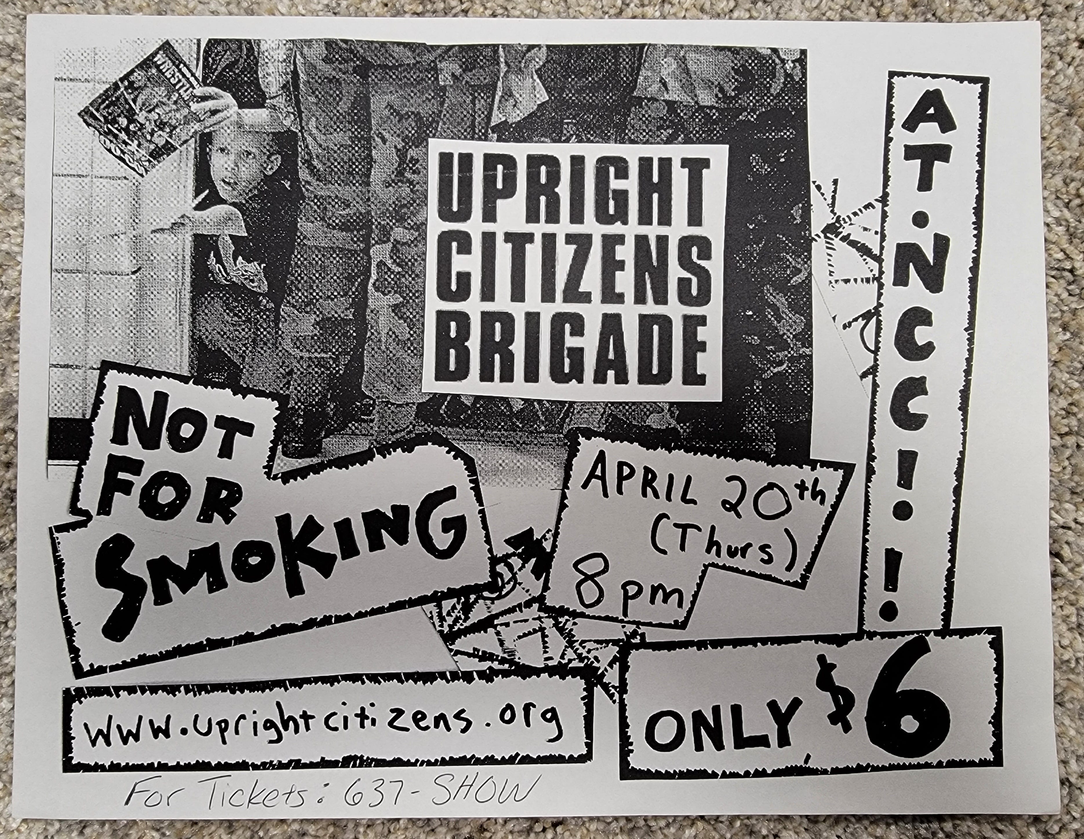 Let’s travel back to the fall of 1999, a time before Twitter/X and YouTube and Facebook and Substack and podcasts. I (Scot) was a sophomore at North Central College, heavily involved with work at WONC, the campus radio station, and The Kindling, the student humor magazine. It was Friday night, so I was in my dorm room, alone, watching Upright Citizens Brigade reruns (as, I assure you, all cool kids were doing at that time).